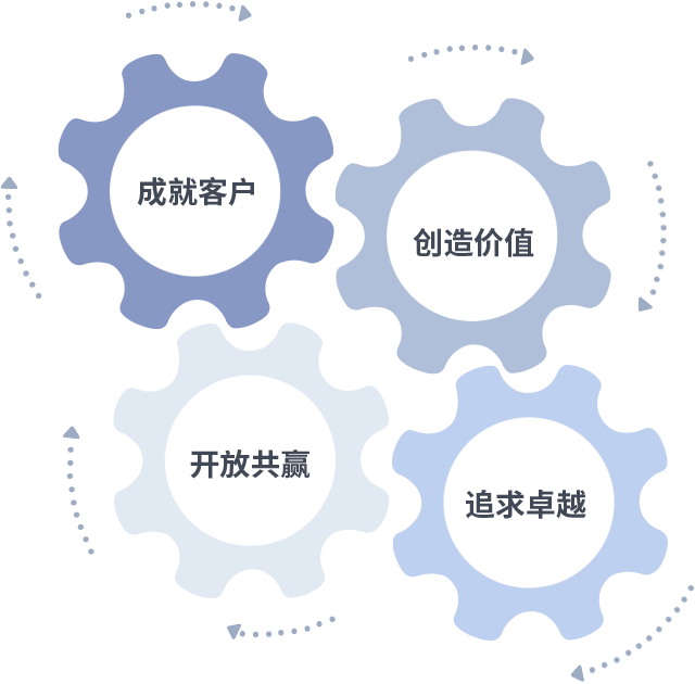 成就客户是一切决策的出发点,创造价值是衡量所有工作的标准,追求卓越是70net永乐高做事做人的态度,开放共赢是70net永乐高的格局也是最终的结果。价值观的齿轮环环相扣,推动着组织里的每个人不断向前。